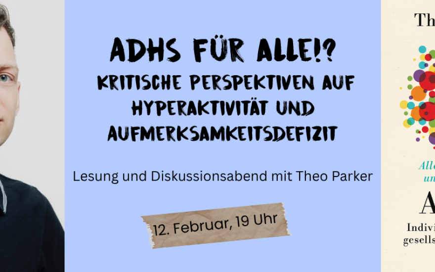 Theo erzählt darüber, wie sich das Bild von ADHS über die letzten Jahrzehnte radikal gewandelt hat, über den Stand der Forschung, über Leerstellen und Widersprüche in der aktuellen Debatte - und natürlich wird es die Gelegenheit für drängende Fragen und hitzige Diskussionen geben.