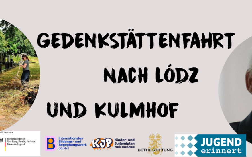 Du bist zwischen 18 und 26 Jahre alt und hast Lust auf eine Bildungsfahrt? Dann komm mit uns auf Gedenkstättenfahrt nach Łódź und Kulmhof in Polen! Vom 19. bis 26. Juli 2026 begeben wir uns gemeinsam auf Spurensuche im ehemaligen Ghetto von Łódź und besuchen die Gedenkstätte zum Vernichtungslager Kulmhof. Vor dem Holocaust lebten mehr als 200.000 Jüdinnen und Juden in Łódź, rund ein Drittel der Bevölkerung. Das Ghetto ‘Litzmannstadt’ (Łódź) war das zweitgrößte Ghetto Polens. Seine Geschichte ist durch Leid, Hunger, Zwangsarbeit, aber auch Formen des Widerstands geprägt. Anhand von Tagebüchern, Fotografien und persönlichen Erzählungen, wollen wir uns vor Ort mit dieser Geschichte auseinandersetzen.